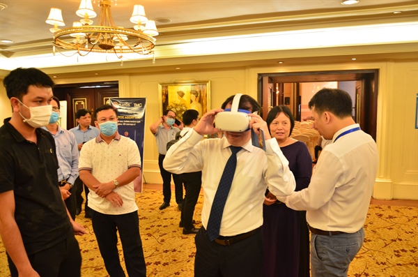 Các đại biểu tham dự diễn đàn trải nghiệm dịch vụ thực tế ảo VR. Ảnh: S.Thùy
