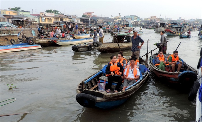 Du khách đi thuyền tour chợ nổi Cái Răng tại Cần Thơ