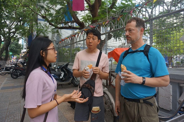 Du khách thích thú với tour “Đà Nẵng free walking tour” và thưởng thức ẩm thực địa phương