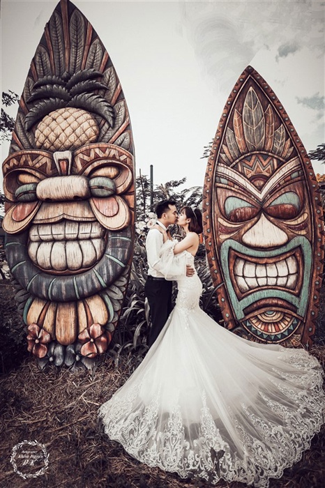 Qua châu Á, sẽ tới châu Âu. Thiên đường du lịch nổi tiếng của Pháp Polynesia được mô phỏng tại Dragon Park bằng những gương mặt thổ dân được cách điệu, chạm khắc hết sức ngộ nghĩnh, dễ thương.