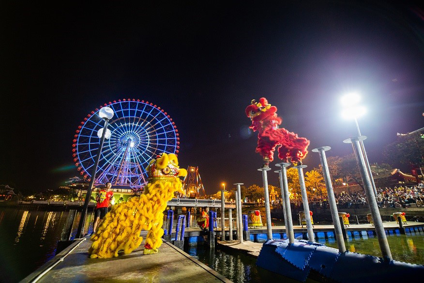 Với những ai yêu thích nghệ thuật dân tộc, đừng bỏ qua những màn trình diễn Lân sư rồng Mai hoa thung trên sân khấu mặt nước hấp dẫn đến thót tim tại sân khấu mặt nước – Công viên Châu Á – Asia Park vào các khung giờ 17h00 và 20h00 hàng ngày, liên tục từ 24.12.2020 đến 3.1.2021 (trừ ngày 28.12.2020).