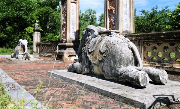 Ở lối ra vào cổng là hai con voi đá được xây hàng trăm năm trước, có ý nghĩa bảo vệ ngôi đền.