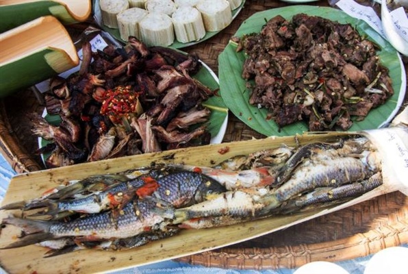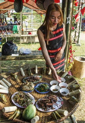 Độc đáo hơn là các đặc sản núi rừng chiêu đãi nhau ngày lễ năm mới đều được đựng trong những ống tre, nứa thân thiện với môi trường