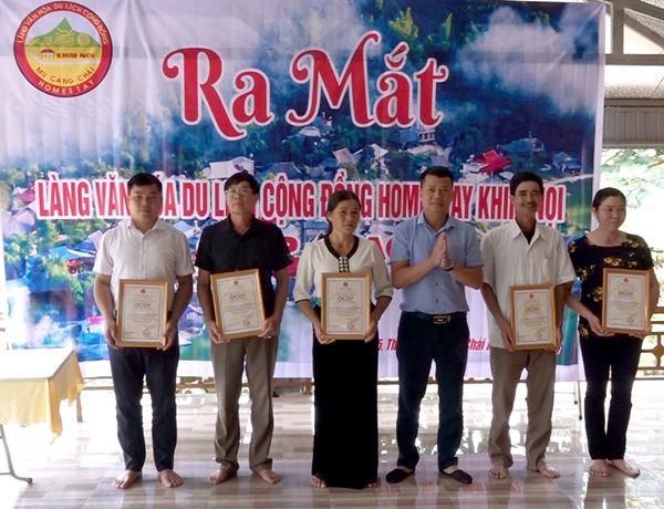Trao chứng nhận đạt chuẩn OCOP 4 sao cho các hộ gia đình kinh doanh dịch vụ du lịch Homestay Khim Nọi. Ảnh Cổng TTĐT Yên Bái