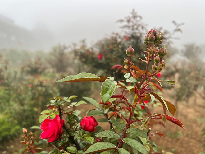Ngoài đỗ quyên, tháng 4 – tháng 5 còn là mùa của hồng leo Sa Pa. Hoa hồng leo trải khắp những tuyến phố ở thị trấn và đặc biệt có nhiều ở Thung lũng hoa hồng thuộc ga đi cáp treo Fansipan. Mùa hoa này khá ngắn ngủi nên đúng dịp lễ 30.4, thời điểm hoa bung nở nhất, du khách lại có cái hẹn về Sa Pa để thưởng thức trọn vẹn vẻ đẹp của những dải hồng rực rỡ. Anh Minh Tú – nhân viên chăm sóc cảnh quan tại khu du lịch Sun World Fansipan Legend chia sẻ: “Hồng leo năm nay sẽ nở sớm và rực rỡ hơn nhiều năm ngoái. Những vòm hồng leo tại Fansipan đang chi chít những chùm nụ, dự kiến từ 20/4 sẽ bắt đầu đồng loạt nở cùng rất nhiều loại hoa hồng khác.”