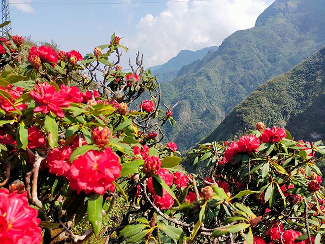 Trải nghiệm ngắm hoa đỗ quyên còn hấp dẫn hơn khi được kết hợp với việc chinh phục đỉnh Fansipan. Trong hành trình khám phá “Nóc nhà Đông Dương”, du khách có thể được tận mắt chiêm ngưỡng hình ảnh những gốc đỗ quyên cổ nơi lưng chừng trời ở độ cao hơn 2.000m. Những khóm đỗ quyên đầu tháng 4 đang bung nở từ những thân cành khô mọc cheo leo nơi vách đá, dệt thành những thảm hoa màu sắc tuyệt đẹp. Lên đến đỉnh, du khách còn được trải bước trên con đường hoa đỗ quyên dẫn đến những địa điểm tâm linh, hoàn thiện thêm trải nghiệm chiêm bái nơi đỉnh thiêng.