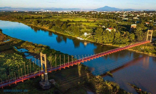 Cầu treo Kon K’lor nối đôi bờ sông Đăk Bla, là cây cầu treo dây văng lớn nhất, đẹp nhất ở Kon Tum