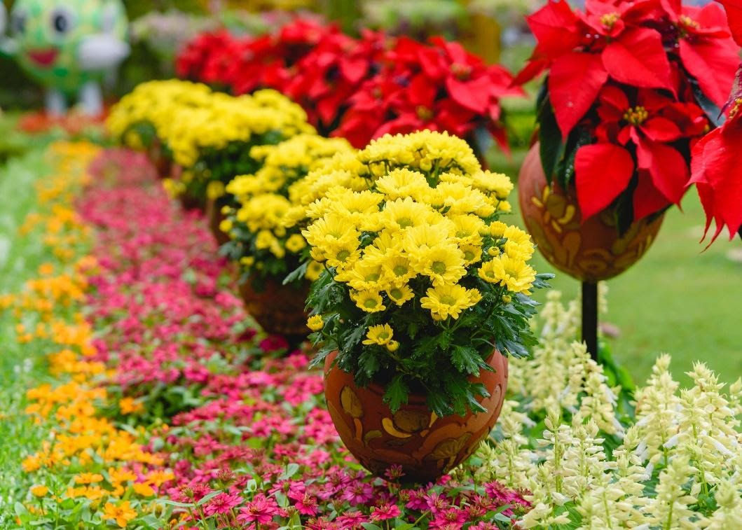 Tết năm nay, khu du lịch “thay áo mới”, đón du khách bằng không gian xanh mướt, ngợp ngời sắc hoa. Những triền hoa cúc vàng tươi, trạng nguyên, xác pháo đỏ thắm, thường xuân vàng nhạt tinh khôi, cẩm tú cầu thanh tao, xác pháo, phi yến… nở bừng khắp đỉnh núi cùng các tiểu cảnh đặc sắc làm nên không khí xuân rộn ràng, hào hứng chưa từng có.