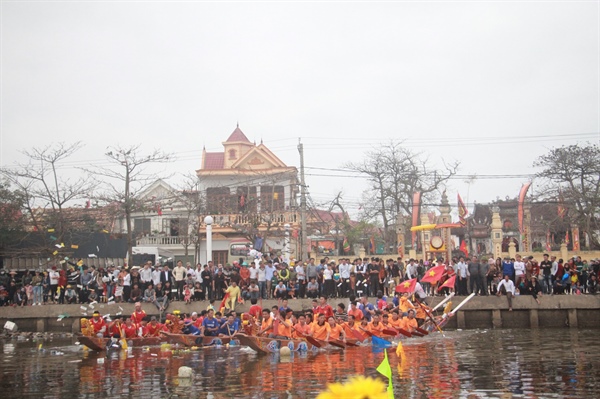Đua thuyền trên sông Lý Hòa vào ngày mồng 3 Tết ở xã Hải Trạch, (Bố Trạch) thu hút đông đảo du khách đến xem.