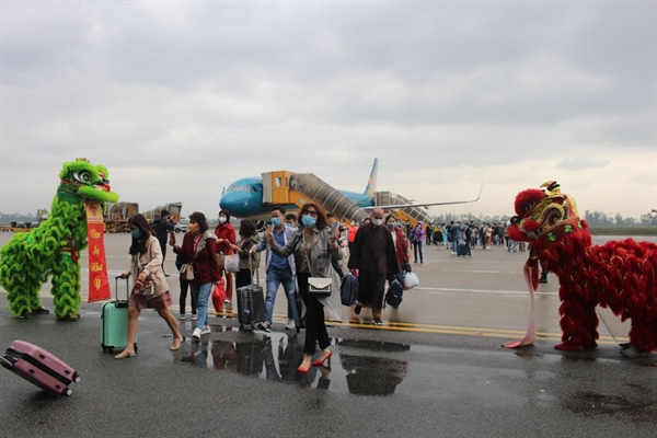 Đoàn hành khách trên chuyến bay VN1370 đến Huế sáng 1.1.2021