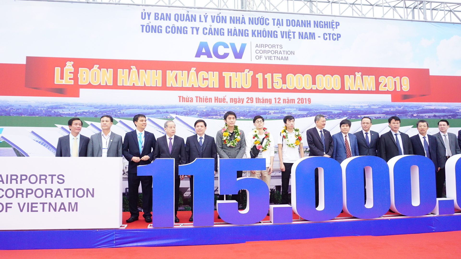Theo đó, chuyến bay mang số hiệu VN 1370 của Vietnam Airlines xuất phát từ Cảng hàng không quốc tế Tân Sơn Nhất lúc 6 giờ 50 phút đến Cảng hàng không quốc tế Phú Bài lúc 8 giờ 30 phút ngày 29.12 đã vận chuyển vị hành khách thứ 115 triệu. Vị khách có tên Matsubara Kuniyoshi, mang quốc tịch Nhật Bản.