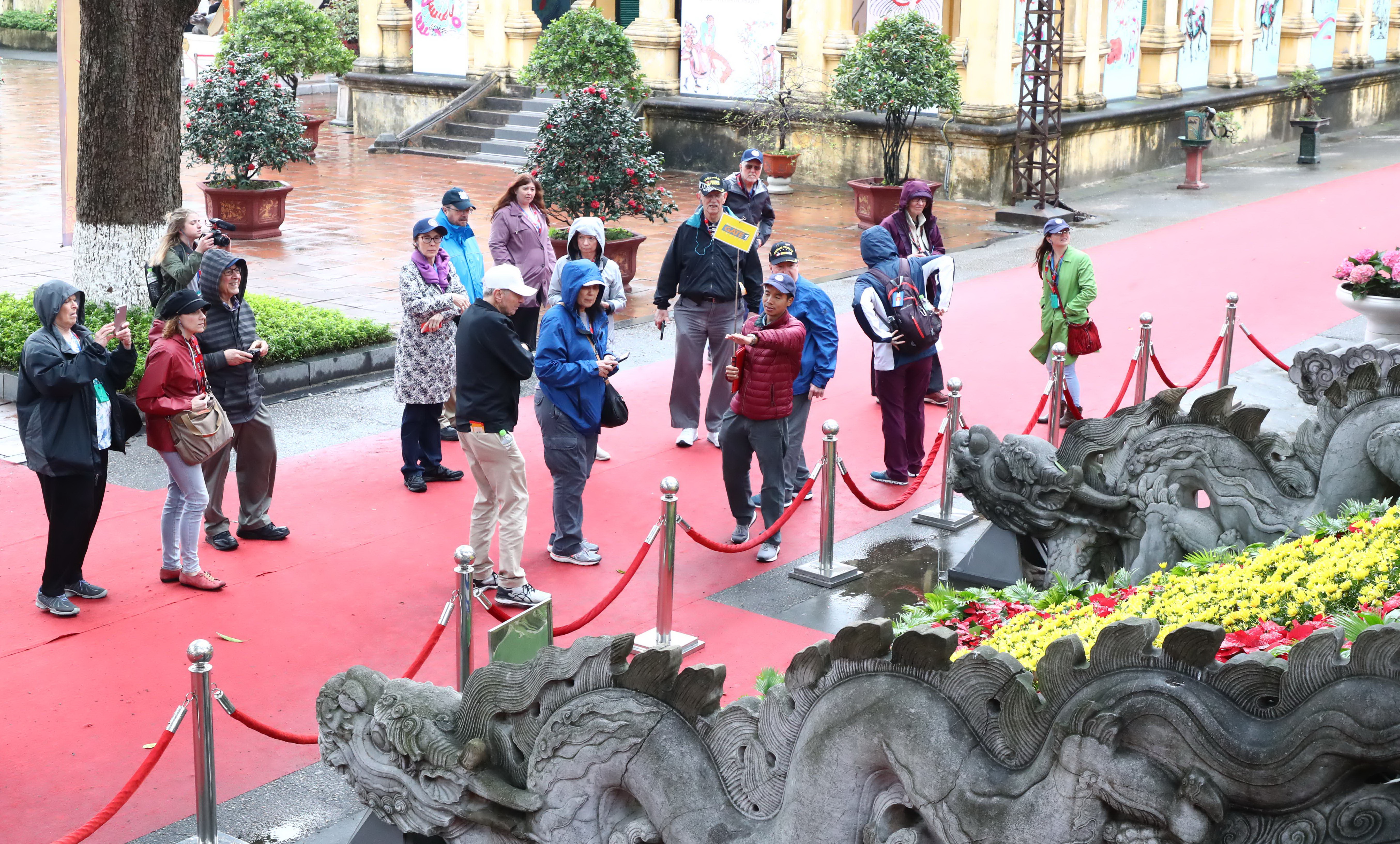 Du khách quốc tế vẫn nườm nượp tham quan Văn Miếu - Quốc Tử Giám Hà Nội, ngày 9.2 Ảnh: TRẦN HUẤN