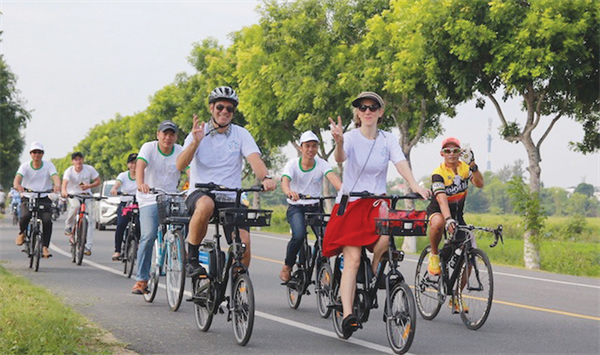 Du khách và bạn trẻ đạp xe hưởng ứng sự kiện