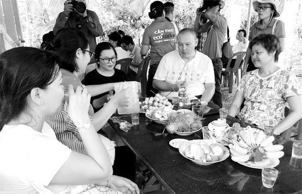 Sau gần ba tháng tham gia làm điểm đến của Can Tho Ecolodge, ngày nào gia đình ông Hai Nhà Mới ở ấp Nhơn Hưng A, xã Nhơn Nghĩa, huyện Phong Điền (TP Cần Thơ) cũng chào đón du khách trong nước và quốc tế đến tham quan vườn cây ăn trái sau nhà. Nở nụ cười thân thiện, hào sảng và chất phát của người miền Tây, ông Hai phấn khởi cho biết, “nói thiệt là ban đầu tui cũng hơi e dè, mấy chục năm qua, trái cây trong vườn phần lớn là do thương lái đến tận nơi thu mua, nhưng giá cả bấp bênh, mùa cao mùa thấp. Nay thì không phải lo thương lái ép giá, bởi có thêm kênh phân phối mới chính là các vị khách đến chơi tận nhà đây rồi. Thu nhập gia đình cũng khấm khá và ổn định hơn. Đây cũng là niềm vui của người dân miệt vườn ở ấp Nhơn Hưng A”.