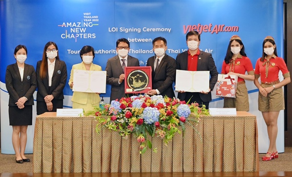Đại diện Vietjet Thái Lan và TAT cùng ký kết thoả thuận hợp tác chiến lược thúc đẩy phục hồi du lịch