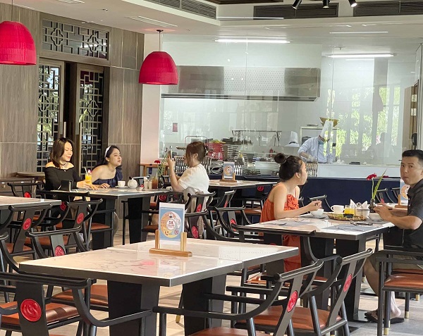 Để đảm bảo an toàn trong phòng dịch, các nhà hàng bố trí khoảng cách cho khách du lịch ngồi ăn