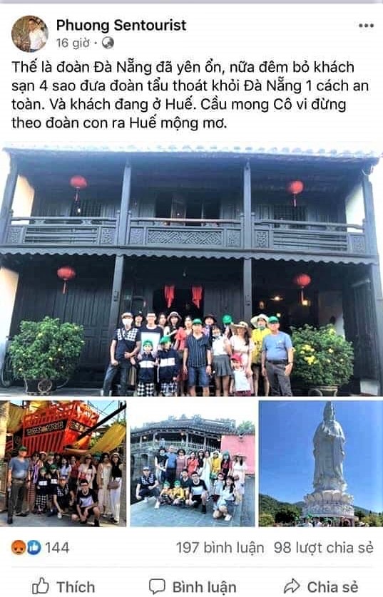 Cuối tháng 7, khi dịch Covid-19 bùng phát lần 2 ở Đà Nẵng, người dân và du khách ai cũng lo lắng, du khách tạm dừng các chương trình du lịch đến Đà Nẵng. Đúng lúc này, hướng dẫn viên có tài khoản facebook Phương Sentourist đã khoe “chiến tích” đưa đoàn khách ra Huế trong đêm, “tẩu thoát khỏi Đà Nẵng”, trốn khai báo y tế, cách ly phòng, chống dịch Covid-19 ở Đà Nẵng. Ngay lập tức, dòng trạng thái chia sẻ của hướng dẫn viên nói trên đã có hàng nghìn trạng thái cảm xúc (hầu như tất cả đều thể hiện sự tức giận) và hàng nghìn lượt chia sẻ trên các diễn đàn du lịch, trang cá nhân… Mạng xã hội dậy sóng, dư luận bức xúc vì đang trong lúc dịch bất ngờ bùng phát lại, cả xã hội căng mình chống dịch, hành động trốn kiểm soát dịch, không khai báo y tế (nếu đúng như bài viết của hướng dẫn viên trên facebook) sẽ gây khó khăn cho công tác kiểm soát, khoanh vùng, dập dịch, nguy hiểm cho cả khách du lịch và điểm đến tiếp theo. Nhiều người đặt câu hỏi: “Trách nhiệm của người làm du lịch với du khách của mình ở đâu? Sao có thể bất chấp tính mạng của người khác, sự an toàn của cộng đồng để thỏa mãn sức mạnh ảo trên mạng xã hội như vậy”? Hướng dẫn viên Võ Hồng Phương, ngụ tại quận 6, TP.HCM, nhân viên, hướng dẫn viên Công ty Du lịch Sentourist có trụ sở tại TP.HCM, chủ tài khoản facebook Phương Sentourist đã bị Thanh tra Sở Thông tin và Truyền thông tỉnh Thừa Thiên Huế xử phạt 10 triệu đồng vì đăng tải thông tin sai sự thật.