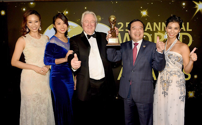 Phó TCT TCDL Hà Văn Siêu (thứ 2 từ phải sang) nhận giải thưởng Điểm đến du lịch hàng đầu khu vực châu Á. Ảnh NGUYỄN QUÂN