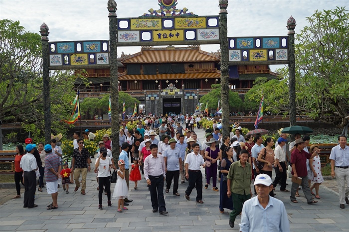 Khách du lịch tham quan khu di sản Hoàng cung Huế