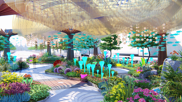 Đến với đại cảnh “Đại dương xanh” năm nay, công chúng có dịp trải nghiệm như đang dạo bước trong lòng đại dương với những cuộn sóng uốn cong đầy mỹ thuật, những cột bong bóng dao động vần vũ và đàn cá bơi lội phía trên đầu. Công nghệ Moodlamp giúp những chậu cây tự phát sáng chuyển màu trong đêm và nắp ngọc trai tự động đóng mở sẽ mang lại hơi thở của cuộc sống về đêm cho“Đại dương xanh”.