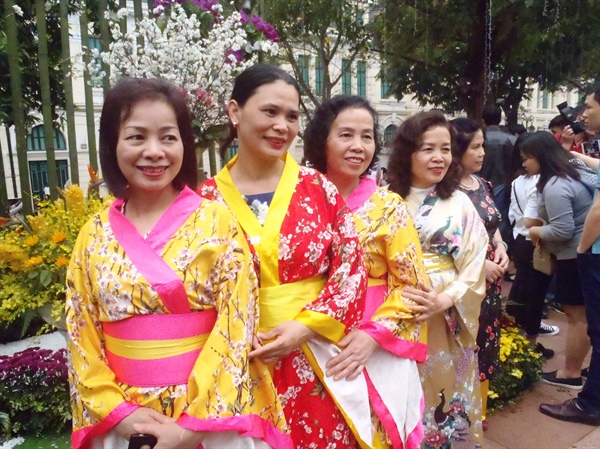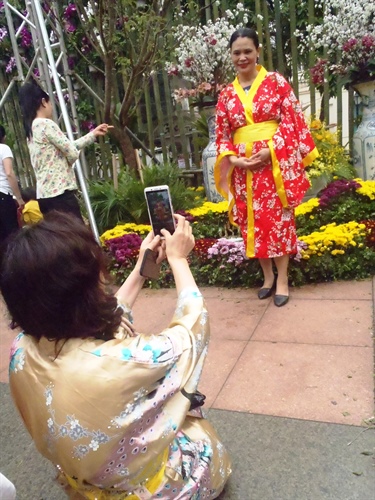 Nhiều phụ nữ VN lớn tuổi mặc thử kimono