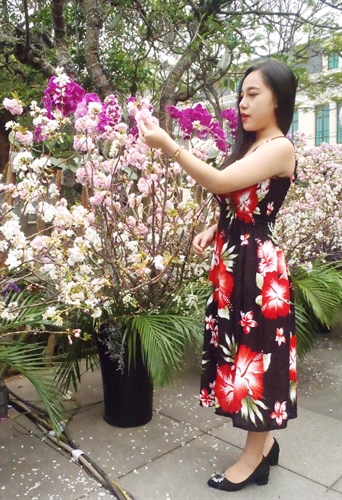Những thiếu nữ trẻ trung dường như đẹp hơn khi đứng bên cạnh những cành hoa Anh Đào