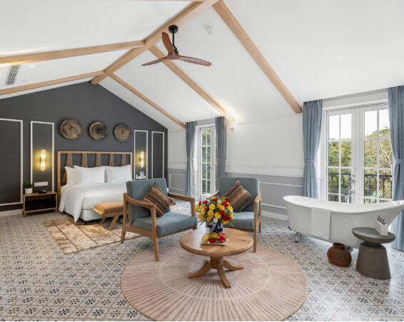 Với phong cách thiết kế hiện đại cùng các chi tiết được lấy cảm hứng từ các dân tộc ở Kon Tum. Sự pha trộn đầy đầy tinh tế của những văn hóa và di sản, đưa quý khách trở về với lịch sự của sự quyến rũ. Điều đặc biệt hơn cả, nơi đây bồn tắm được đặt ngay trong phòng ngủ, khiến cho kỳ nghỉ của du khách thêm phần thú vị, lãng mạn và thăng hoa.