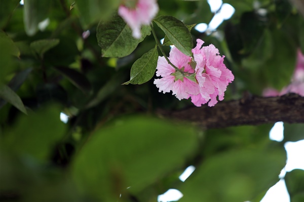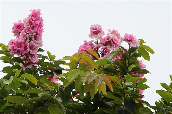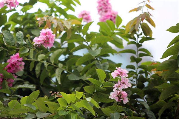Cây bằng lăng đã nở nhiều năm nay, những chùm hoa không khác gì hoa bằng lăng tím, điều khác biệt duy nhất mầu hồng tạo nên dấu ấn riêng khác biệt hoàn toàn so với những cây bằng lăng tím khác