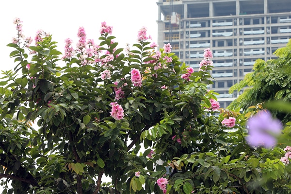 Dưới cái nắng nóng của mùa hè, những bông hoa bằng lăng hồng vẫn vươn mình khoe sắc.