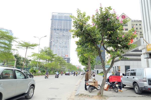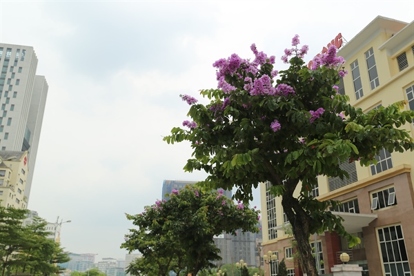 Cây bằng lăng hồng nở rực rỡ gọi hè về được trồng trên phố Trần Thái Tông (quận Cầu Giấy, HN)