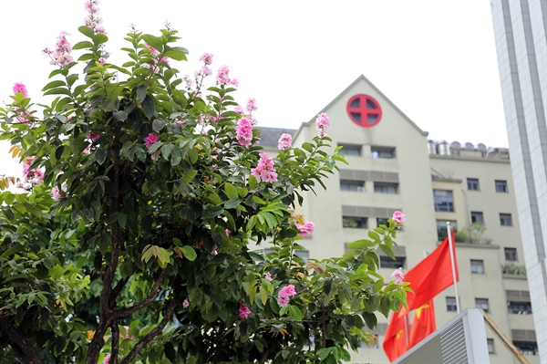 Cây hoa bằng lăng hồng độc đáo duy nhất gần Viện Huyết học và Truyền máu Trung ương