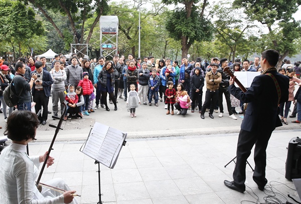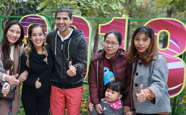 Nhiều bạn trẻ phấn khởi cho biết, sở dĩ họ phải đến sớm không chỉ để vui đùa, trò chuyện mà còn tìm kiếm chỗ đứng “đắc địa” nhằm quan sát tốt nhất đồng hồ đếm ngược đón chào năm mới 2018.