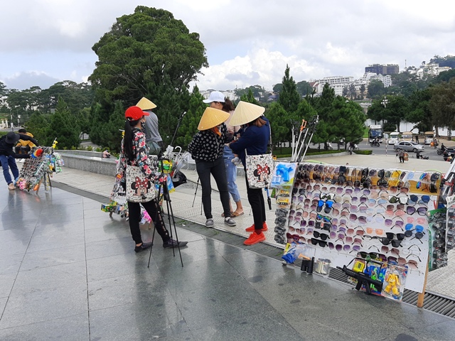 Đà Lạt có rất nhiều người bán hàng rong tại các điểm vui chơi, bán hàng “chèo kéo” du khách