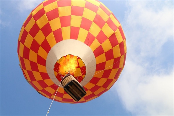 Bên trong quả khinh khí cầu được đốt lửa để giúp khinh khí cầu bay lên.