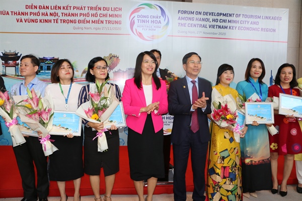 Diễn đàn liên kết phát triển du lịch TP.Hà Nội, TP.Hồ Chí Minh và vùng kinh tế trọng điểm miền Trung được UBND các tỉnh, thành phố khởi động từ tháng 7.2020 với 4 nội dung trọng tâm gồm : Công tác quản lý Nhà nước về du lịch; Phát triển sản phẩm du lịch; Quảng bá xúc tiến du lịch; Phát triển nguồn nhân lực du lịch. Qua đó, các tỉnh, thành phố sẽ trao đổi thông tin nhằm xây dựng những định hướng mới trong phát triển du lịch tại địa phương; khai thác hiệu quả giá trị tài nguyên du lịch tự nhiên, đa dạng và đặc trưng của vùng cùng hệ thống di tích văn hóa, lịch sử, làng nghề, ẩm thực phong phú và phát huy được lợi thế của ngõ vùng, cửa ngõ quốc tế, cơ sở hạ tầng du lịch.