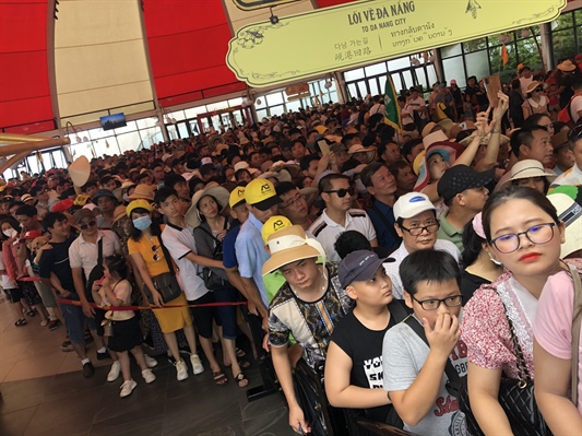 Du khách chen chân tại một điểm du lịch Đà Nẵng (ảnh chụp ngày hôm qua 21.7) Ảnh: NGUYỄN HUYỀN