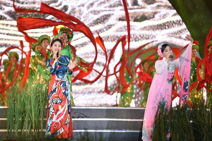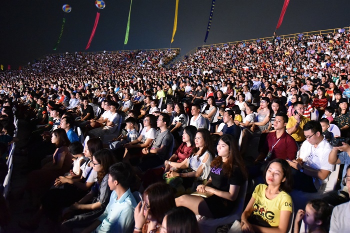 Khán đài dành cho đại biểu, nhân dân và du khách gồm 10.258 kín chỗ. Xung quanh khu vực công viên Sun World Hạ Long, phía ngoài sân khấu chính cũng thu hút hàng nghìn người xem qua màn hình.