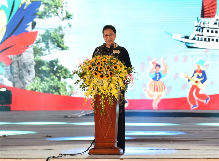 Chủ tịch Quốc hội Nguyễn Thị Kim Ngân phát biểu tại Lễ khai mạc Năm du lịch quốc gia 2018