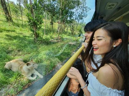 Hấp dẫn nhất phải kể tới trải nghiệm công viên động vật hoang dã bằng xe chuyên dụng theo phương thức thú vị “người nhốt, thú thả”. Du khách ngồi trên xe bus được tận mắt nhìn ngắm hổ Bengal quý hiếm vờn nhau bên đám cỏ khô, đàn hươu cao cổ lững thững nối nhau băng qua đường, bầy tê giác nhởn nhơ tắm bùn hay đàn linh dương cảnh giác với những tiếng gầm gừ của “chúa tể sơn lâm” cách đó không xa...chỉ qua một tấm kính.
