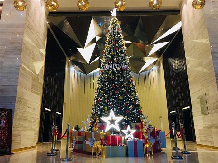 Ngay tại sảnh khách sạn, những cây thông Noel cao đến 6m sáng bừng lộng lẫy sẽ là tâm điểm tạo không gian lễ hội đặc sắc. Đồng loạt trongngày 07/12/2018, chuỗi 8 khách sạn Vinpearl Hotels sẽ đồng loạt thắp đèn cây thông Noelđể chính thức “Thắp sáng ngàn sao”cho mùa Giáng sinh và lễ mừng Năm mới. Chương trình còn bao gồm các tiết mục biểu diễn nghệ thuật mang hơi thở Lễ hội, mở cửa hoàn toàn miễn phí chào đón các khách hàng nhí vớirất nhiều món quà ý nghĩa đáng yêu.