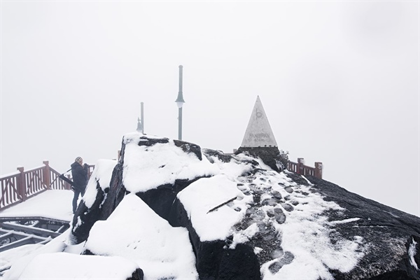 Bất chấp cái rét cắt da cắt thịt của đợt lạnh kỷ lục kéo dài đến hơn 1 tháng, Tuấn “moctui” cùng 4 người khác của Ban quản lý Vườn Quốc gia hăm hở cõng theo “khối inox” nặng tới 27kg vượt núi lên đường. Phải mất 2 ngày, đoàn mới lên được tới đỉnh. Mưa rất lớn, gió từ sườn Lai Châu hồng hộc lùa về, ràn rạt tạt vào mặt những gã trai đã ướt đầm và đang run cầm cập.