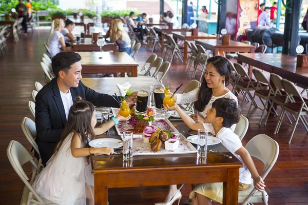 Đến Bà Nà vào những dịp lễ hội, du khách sẽ bị “nhấn chìm” trong những món ăn đặc trưng và đúng điệu. Đó là những bánh mì muối, xúc xích Đức, pizza Ý béo ngậy, là bia Đức thượng hạng, là những món nướng từ thịt và hải sản thơm nức mũi… Kể cả nếu bạn đến Bà Nà không phải mùa lễ hội, thì 20 nhà hàng đẳng cấp quốc tế với đủ mọi phong cách ẩm thực nổi tiếng thế giới như Ý, Nga, Đức… sẽ khiến bạn được tận hưởng đủ những hương vị ngọt ngào, đặc trưng từ nhiều vùng đất nổi tiếng của thế giới.