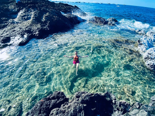 "Hồ bơi nổi giữa biển", hồ vô cực hay "bể bơi tự nhiên" là tên gọi mà người dân địa phương và du khách đặt cho những hố nước mặn tự nhiên, được bao quanh bởi những vách đá lớn dựng đứng sát biển. Ảnh: Cát Phú Quý
