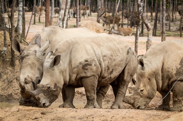 Mới sáng tinh mơ, những chú tê giác quý hiếm với thân hình đồ sộ nhuốm bùn tươi đã chạy huỳnh huỵch gây huyên náo một góc khuôn viên bán hoang dã của Vinpearl Safari. Nghịch ngợm nhất là 7 anh em tê giác con mới được sinh ra tại Vinpearl Safari trong hơn 2 năm qua. Đây cũng là kỷ lục hiếm có của loài tê giác tại bất cứ vườn thú nào trên thế giới.