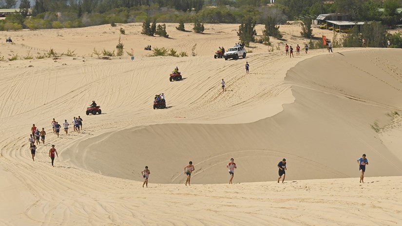 Giải thể thao 3 môn phối hợp được tổ chức tại thắng cảnh Bàu Trắng. (Ảnh: Hồng Hiếu/TTXVN)