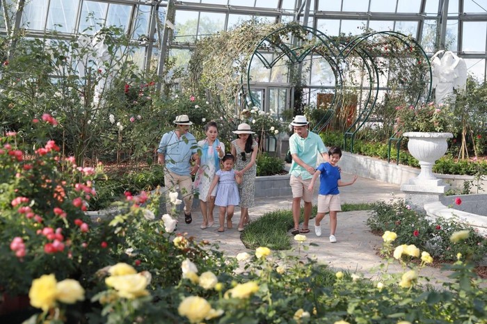 Dưới ánh nắng nhiệt đới vàng tươi, hơn 5.000m2 của hoa hồng được trồng theo từng cụm nối nhau dẫn lối, tạo nên một “mê cung tình yêu” với hương sắc mê đắm lòng người. Hàng trăm đóa hồng cổ lừng danh, hồng ngoại thân gỗ (Rose Tree), hồng leo tường, hồng bụi… chen lẫn nhau khoe sắc kiêu kỳ và tỏa hương ngan ngát.