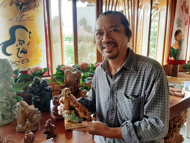 Nhà điêu Khắc Đoàn Xuân Hùng với các sản phẩm gốm do chính ông chế tác
