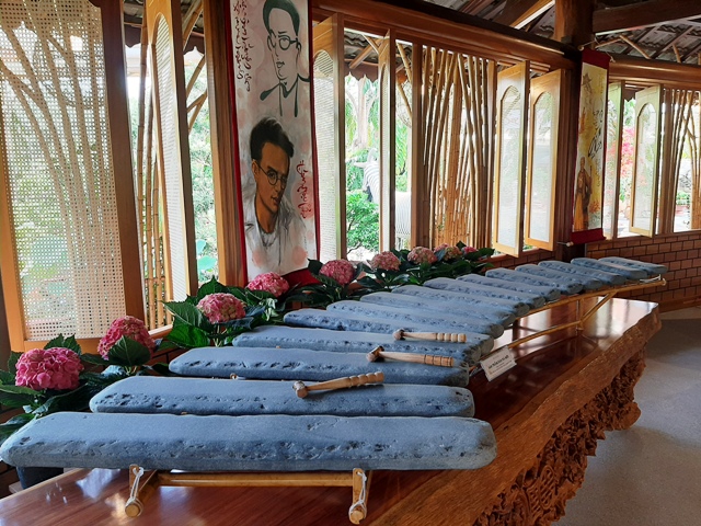 Bộ đàn đá do các nghệ nhân chế tác và trưng bày tại Làng nghề Trường Sơn