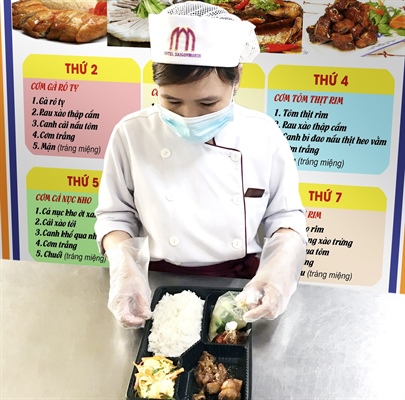 Bộ phận bếp của khách sạn Saigon Morin chuẩn bị suất cơm trưa giao tận nơi cho khách hàng