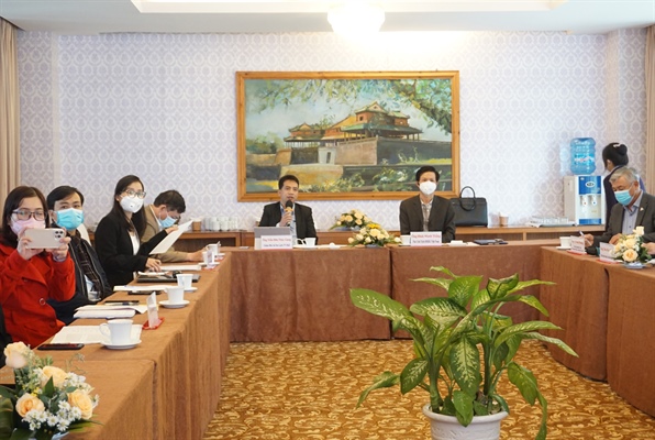 Các đại biểu dự hội thảo trực tuyến tại đầu cầu Huế.